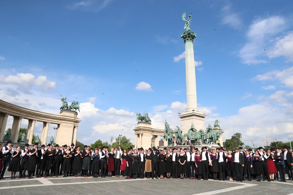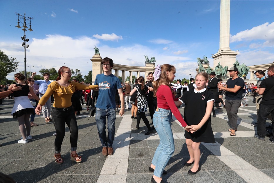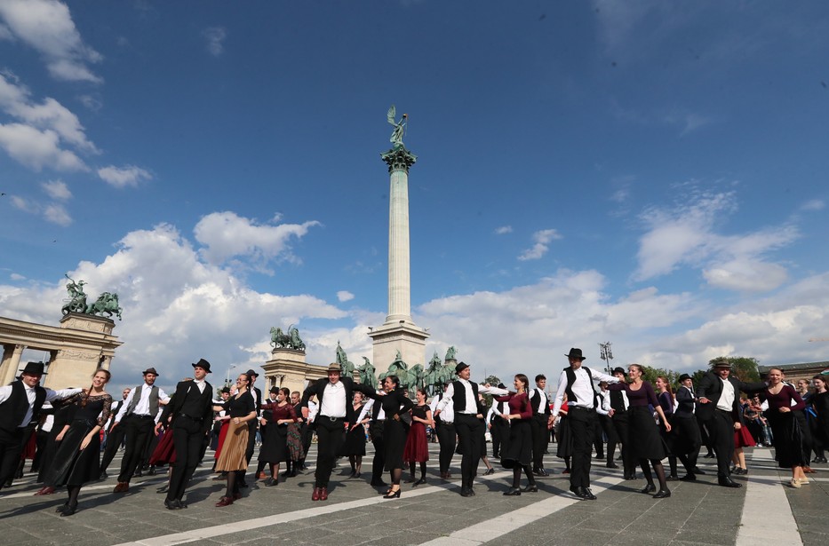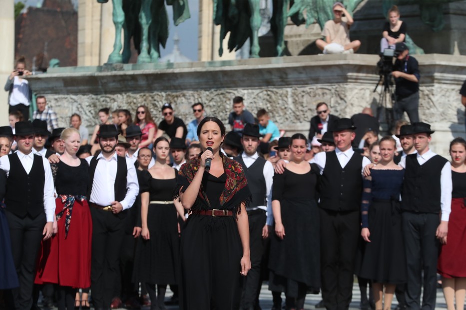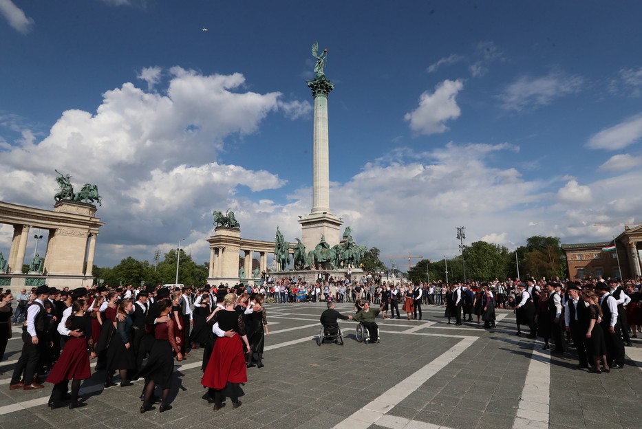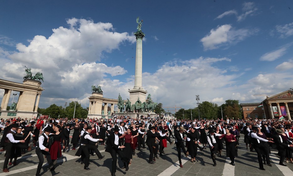 Száz néptáncos közös előadása emlékeztet a trianoni diktátumra; a csütörtöki eseményen az első világháborút lezáró békeszerződés aláírásának 100. évfordulóján, június 4-én, 16 óra 32 perckor a táncosok élőzenével kísért produkciója volt látható a Hősök terén