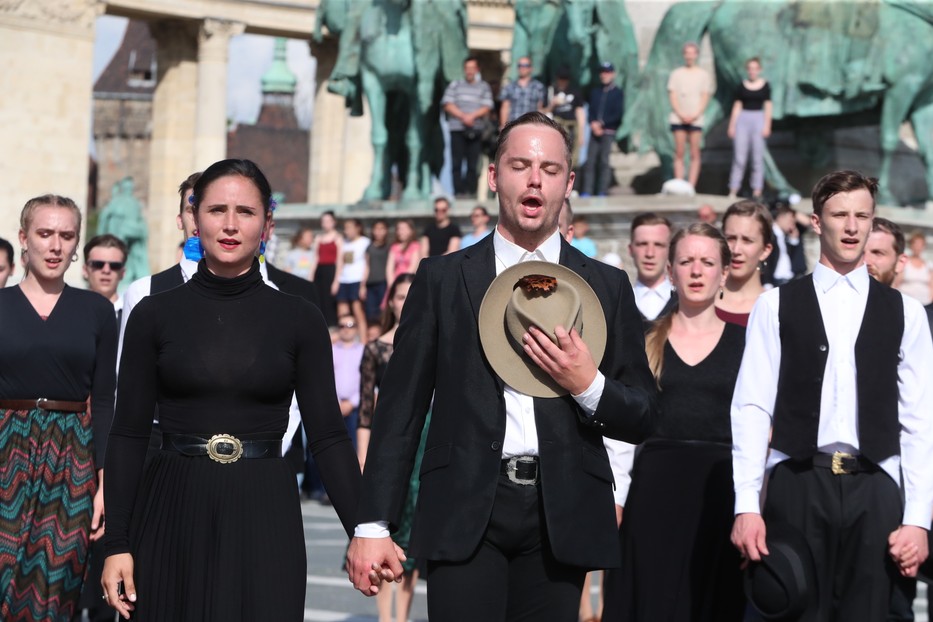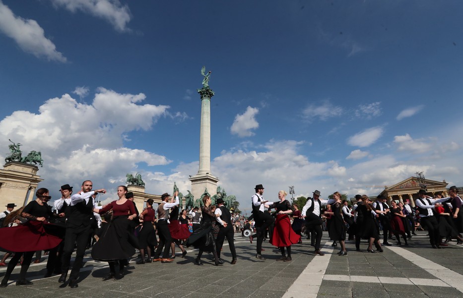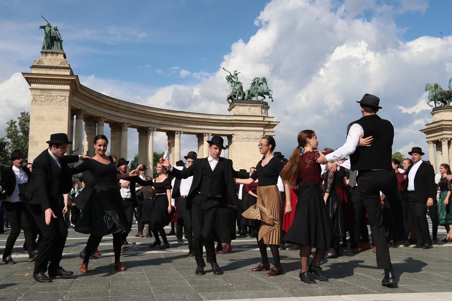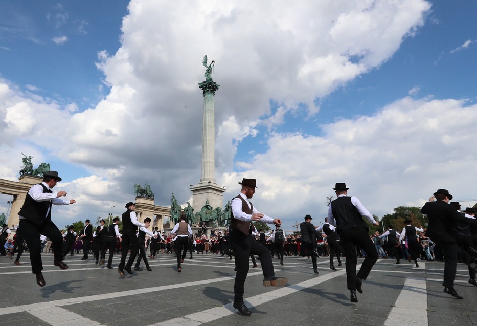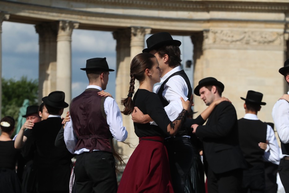 Száz néptáncos közös előadása emlékeztet a trianoni diktátumra; a csütörtöki eseményen az első világháborút lezáró békeszerződés aláírásának 100. évfordulóján, június 4-én, 16 óra 32 perckor a táncosok élőzenével kísért produkciója volt látható a Hősök terén