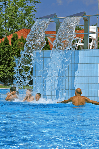 Igazi családi vizes birodalom, számos medencével, élményfürdőkkel, játékokkal, csúszdaparkkal. A hatalmas zöld felülettel, ligetes, fás területen található fürdőben van úszó- és tanmedence is, de a legnagyobb sikere ilyenkor a kalandmedencének van. A gyerekesek találnak külön a kicsiknek kialakított medencét, és van a nagyobbaknak való is. Az élménymedencében sokféle élményelemet helyeztek el.