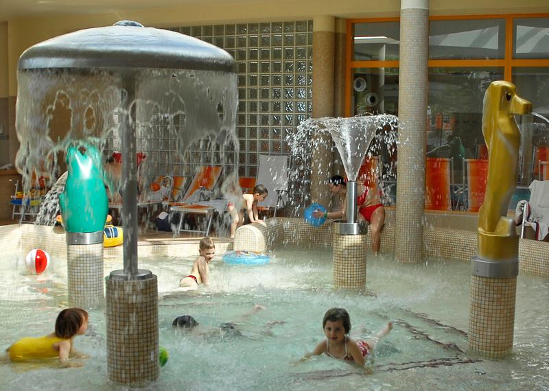 A kültéri élménymedence vagy a pezsgőfürdő a nagyobbakat várja. A leglátványosabb azonban a mediterrán élménymedence. A hatalmas üvegkupola alatt lévő medence partján pálmafák állnak, a víz egy trópusi szigetet ölel körül, van vadpatak, vízesés és vízbuzgár is benne.