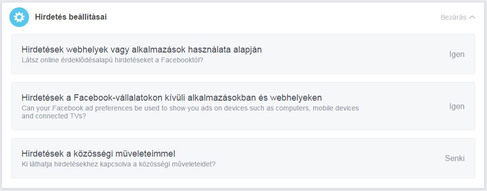 A megnyíló ablakban balra katt a Hirdetések/ Hirdetés beállításai-ra, s itt állítsunk minden Igent Nem értékre.