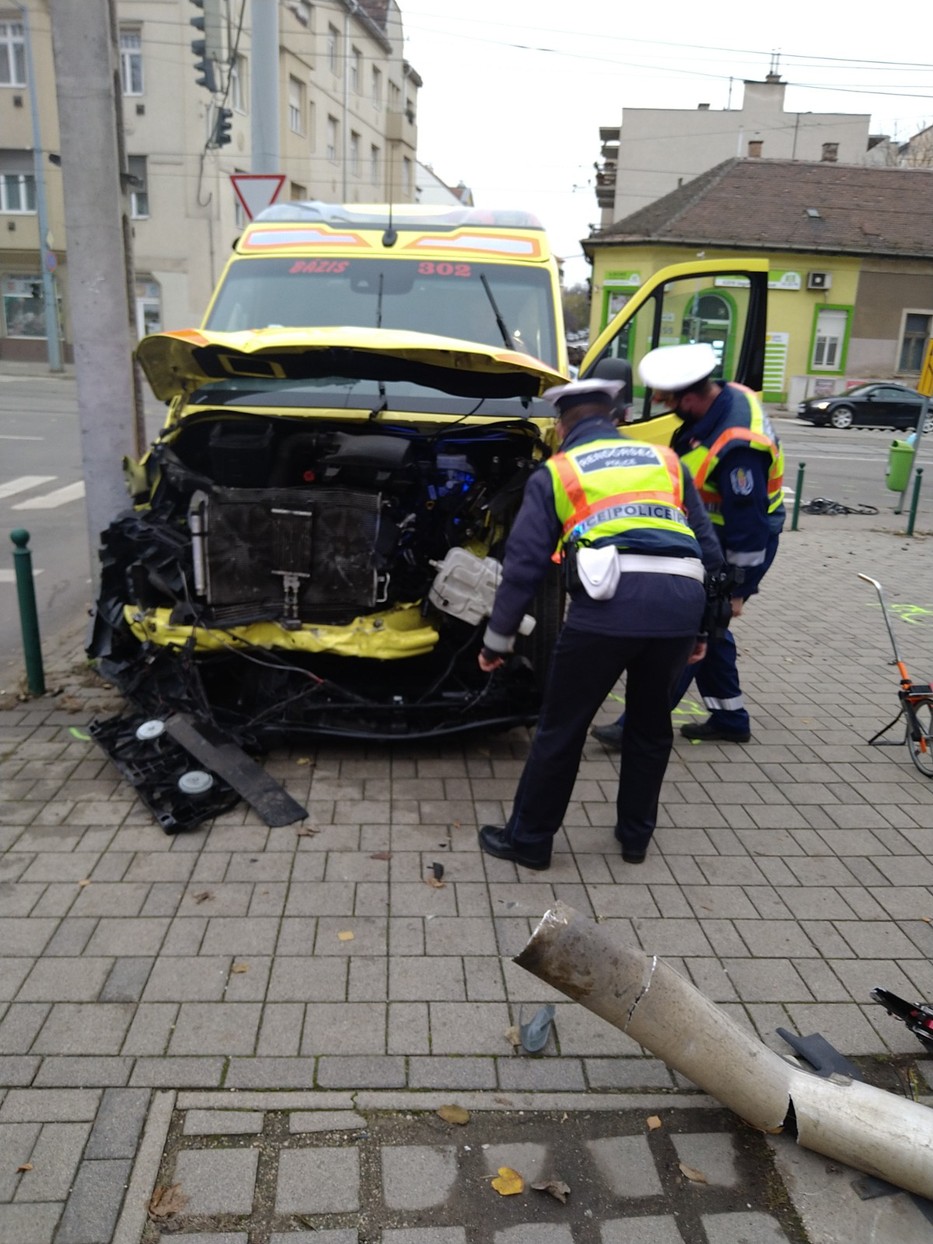 A helyszínen készül fotókból látszik, hogy a mentőautó szinte ripityára tört a baleset során, de a személyautón is hatalmas kár keletkezett.