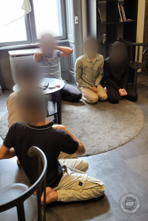 A nyomozók a járőrökkel együtt hatoltak be az ingatlanba. Kopogásukra eleinte senki nem akart ajtót nyitni, csak többszöri felszólításra jött ki egy férfi. Bár állította, hogy egyedül van a lakásban, de azt átvizsgálva, a rendőrök vele együtt, összesen hat férfit találtak benn.