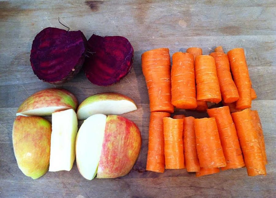 Tegyük az alapanyagokat külön-külön a gyümölcsfacsaróba, az így nyert gyümölcs és zöldség levet, hagyjuk állni anélkül, hogy összekevernénk. Ez azért szükséges, mert az alapanyagokból kicsavart lében, egy óra alatt aktiválódik az összes vitamin, amely egészségi állapotunkra jó hatást gyakorol. Egy óra elteltével, összekeverjük a zöldség és gyümölcs leveket és már fogyaszthatjuk is az egészségesés finomságot.