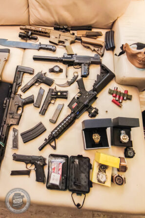 Emellett az egyik helyszínen találtak airsoft fegyvereket, valamint gáz- és riasztó pisztolyokat, hozzájuk tartozó tárakat, lőszereket, sőt még hangtompítót is.