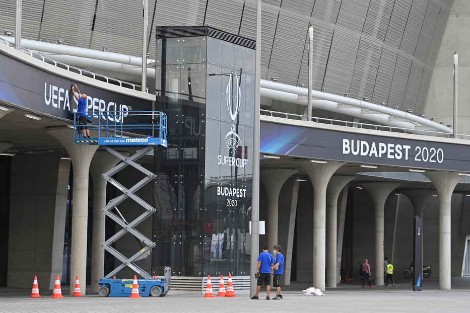 Nagyban folyik a készülődés a Puskás Arénában, ugyanis ma rendezik meg az Európai Szuperkupa-mérkőzést.