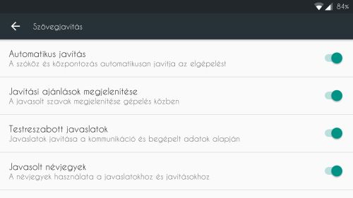 Néha ugyan jókat lehet mulatni a javításain, de amikor már sokkal tovább tart miatta beírni egy szöveges üzenetet, akkor jobb kikapcsolni a Beállítások/Nyelv és bevitel/Billentyűzet/Android billentyűzet menüpontban. (Ahol még más kényelmetlen kényelmi szolgáltatástól is megszabadulhatunk.)
