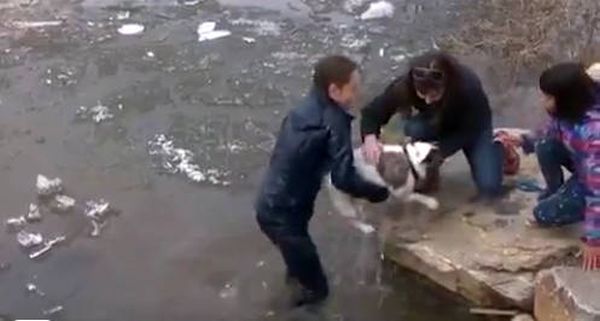 A dermesztően hideg víz sem akadályozta meg egy kanadai kutya gazdáját abban, hogy gondolkodás nélkül kutyája után ugorjon a befagyott tóba.