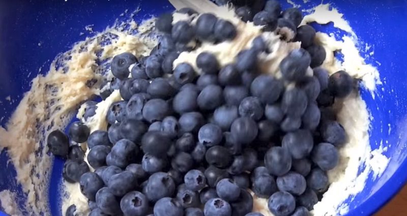 Tegyük bele az áfonyát és keverjük jól össze. Bármilyen erdei gyümölcsöt használhatunk ízlés szerint.