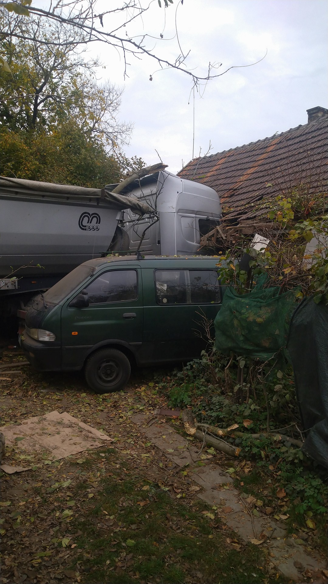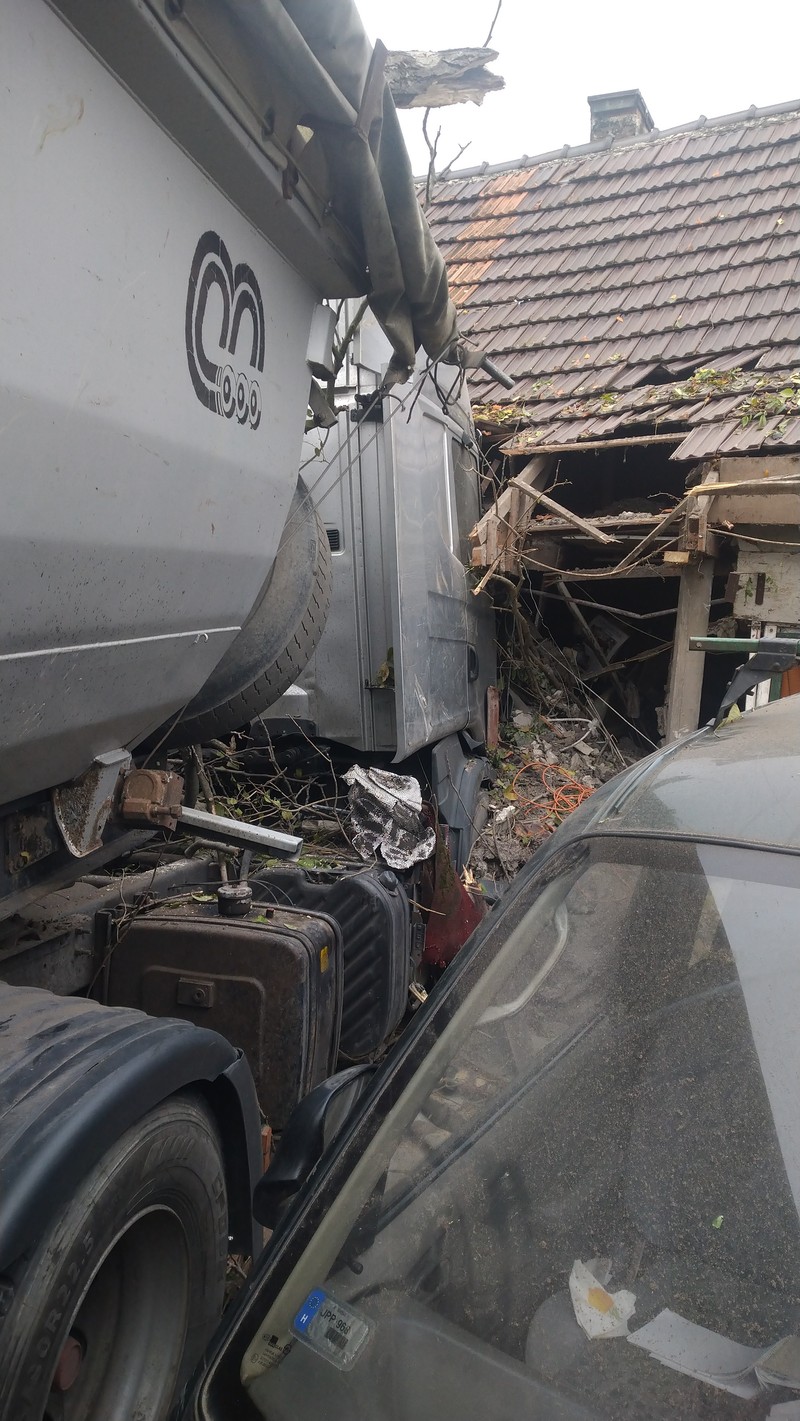 Hatalmas károkat okozott mind a családi ház oldalában, mind pedig a tetőszerkezetében a becsapódott kamion.