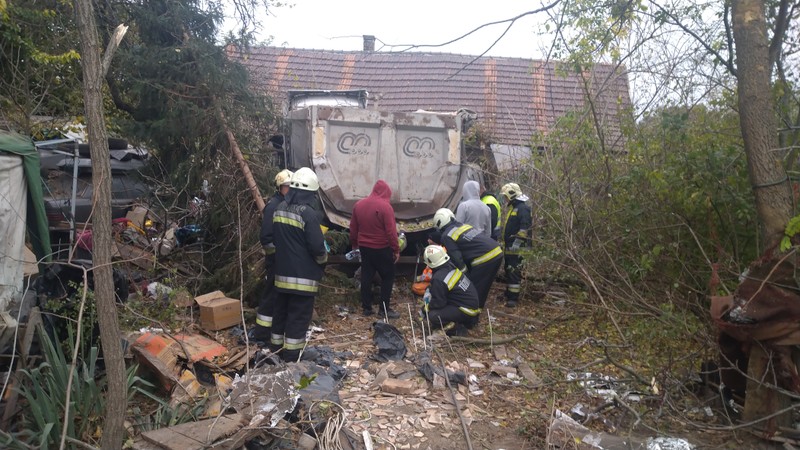 Az Alsóbabád úton bekövetkezett balesetben sem a járműszerelvény vezetője, sem a házban tartózkodó házaspár nem sérült meg. A katasztrófavédelem információ szerint az üres nyerges vontató defekt miatt hagyta el az úttestet. A szerencsétlenséghez a dabasi és a fővárosi hivatásos tűzoltókat riasztották. A helyszínre jelenleg egy statikust is várnak.
