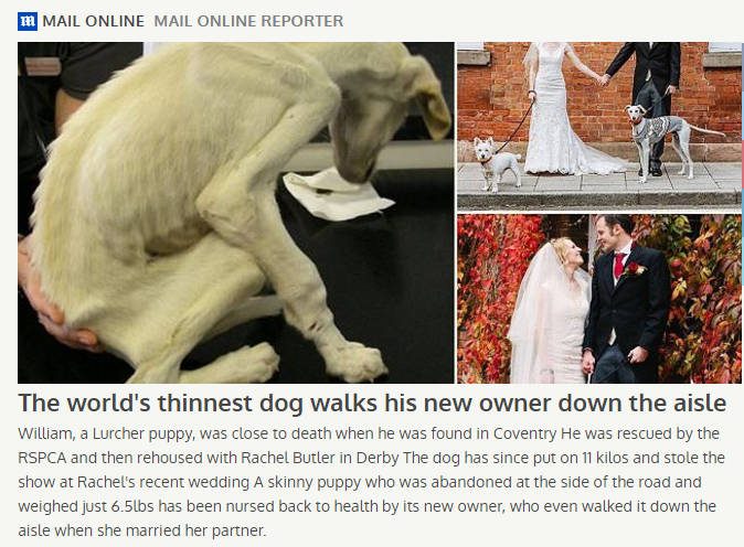Willam jó eséllyel a világ legsoványabb kutyája volt, mikor 2015 szeptemberében rátaláltak egy út mellett az angliai Coventryben, alulról karcolta a 3 kilót – írta a Daily Mail.