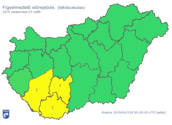 Több megyében adtak ki riasztást felhőszakadás, illetve zivatarok miatt.