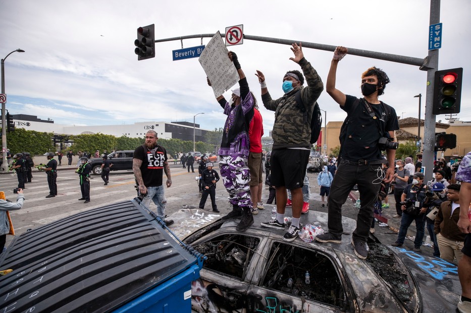 Tűzoltók oltották el a lángokat egy kifosztott boltban, miután a tüntetés során lángra lobbant egy üzlet a Los Angeles-i Melrose-on. Több ezren tüntetnek az utcákon a nemrég elhunyt George Floyd miatt. Az erőszakos tüntetők egy amerikai zászlót is felgyújtottak, ezzel kifejezve a tiltakozásukat.
