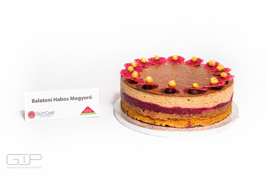 – a budapesti Horváth Cukrászda Balatoni Habos Mogyorónevű kreációja feketeribiszkével és tejcsokoládés karamellel