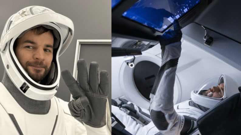 Kapu Tibor négy ujja arra utal, hogy az űrhajón a hívójele a Seat 4, azaz a négyes ülés. A Crew Dragont az asztronauták érintőképernyőkről irányítják / Fotó: Kapu Tibor Facebook-oldala
