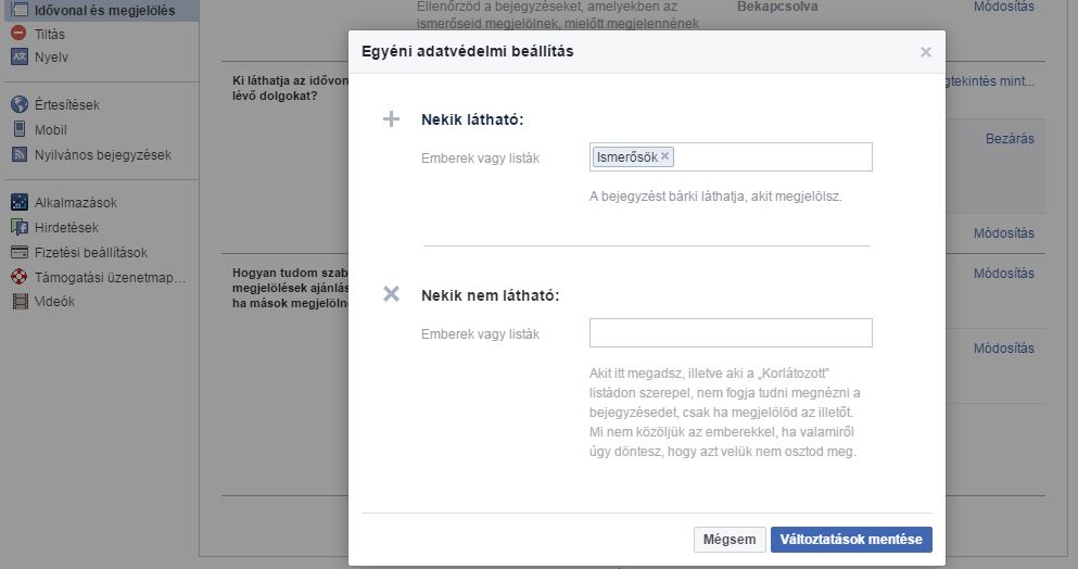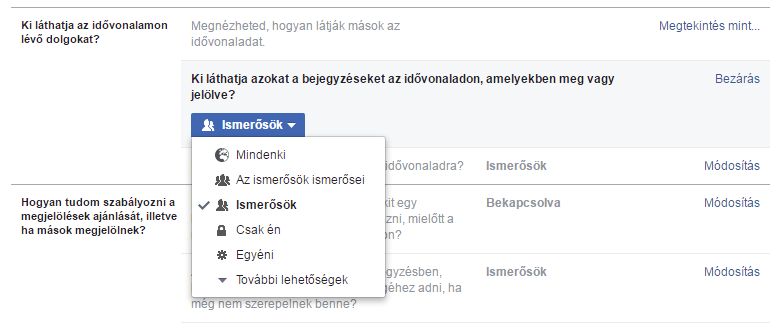 Beállíthatjuk, pontosan ki olvashatja az idővonalunkon megjelenő posztokat.
