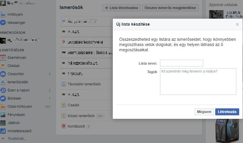 Létrehozásukhoz ezúttal induljunk el a fenti vízszintes menüsorban a „Kezdőlap”-tól, majd válasszuk az „Ismerőslisták”-at, mire elérhetővé válik az „Ismerősök” ablak.