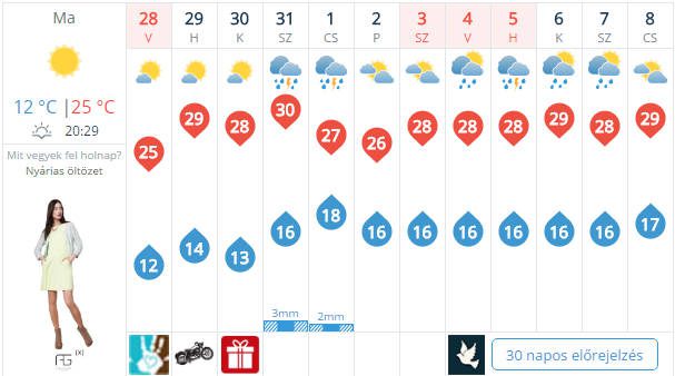 Csapadék nem lesz. A keleti, északkeleti szelet főként a Dunától keletre kísérhetik élénk lökések. A legmagasabb nappali hőmérséklet 23 és 27 fok között várható. Késő estére 17 és 22 fok közé hűl le a levegő. met.hu