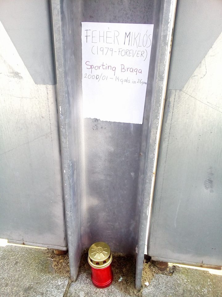 Másnap Portó irányába vettem az irányt, ahol a magyar játékos 1998-ban megkezdte portugáliai pályafutását, de előtte meglátogattuk Joaoval a Sporting Braga stadionját. Ebben a csapatban a 2000/2001-es szezonban 26 mérkőzésen 16 gólt szerzett Miki. Itt hozzánk csapódott a helyi csapat 15 éves üdvöskéje, aki azután született, hogy Fehér a csapatában játszott, mégis tudott róla és a játékáról mesélni. Itt egy gyertyát és egy üzenetet helyeztünk el közösen.