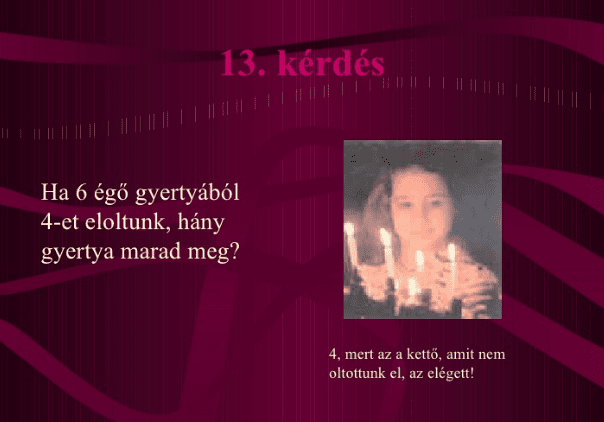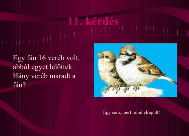 Rövid kis megpihenésre, egy mosoly fakasztására, a válaszok tökéletesen alkalmasak.