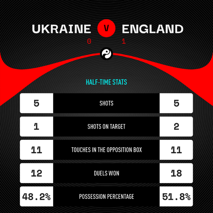 De nem durva a meccs, az angolok békésen passzolgatnak, az ukránok hátrányban is kontráznak. | ||