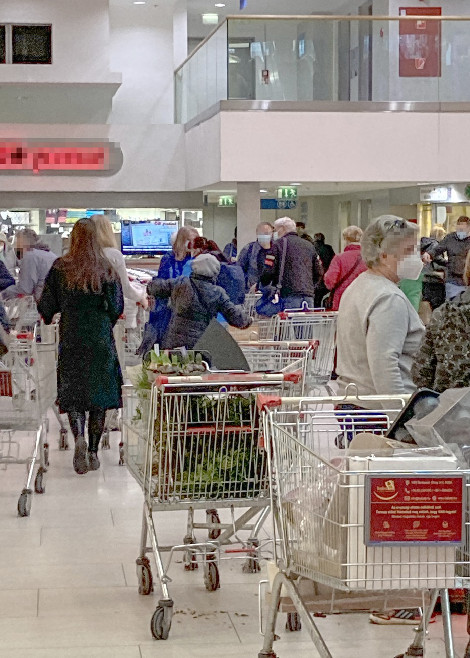 A fotók tanúsága szerint egyébként az emberek visszafogták magukat, nem rohamozták meg az üzleteket, bár több helyütt például minimalizálták a bevásárlókosarak számát, mindezt annak érdekében, hogy biztosak legyenek benne, valóban csak annyi vásárló tartózkodik az üzletben, amennyit a jogszabály lehetővé tesz.