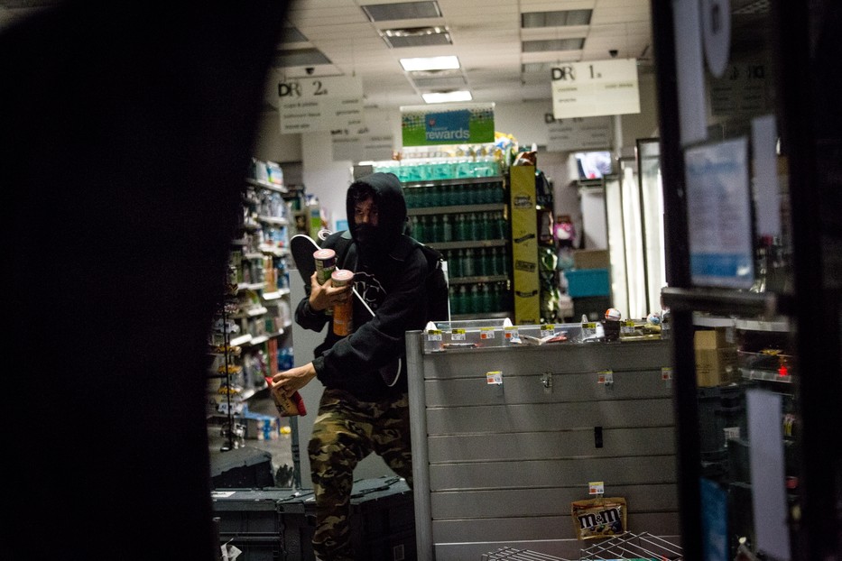 Az amerikai televíziók tudósításai szerint fiatalok csoportjai köröztek Manhattan szívében, és a rendőrök akkor kapták el őket, amikor éppen egy elektronikus cikkeket forgalmazó áruházba törtek be.