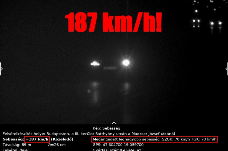 A rögzített szabálysértések közül két kirívó eset is napvilágra került: egy járművezető a Hadrianus utcánál a megengedett 70 km/h helyett elképesztő, 187 km/h-s sebességgel száguldott, míg egy másik autós a Királyok útján a megengedett 40 km/h helyett 72 km/h-val közlekedett. Az ilyen fokú felelőtlenség nemcsak önmagában veszélyes, hanem más közlekedők életét is közvetlenül kockáztatja.