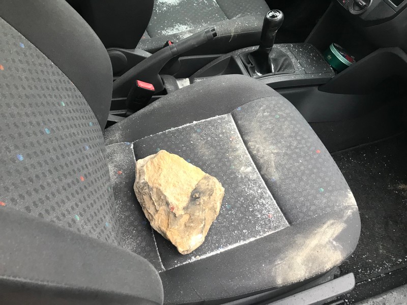 A több mint három kilogrammos kő szilánkosra törte a szélvédőt