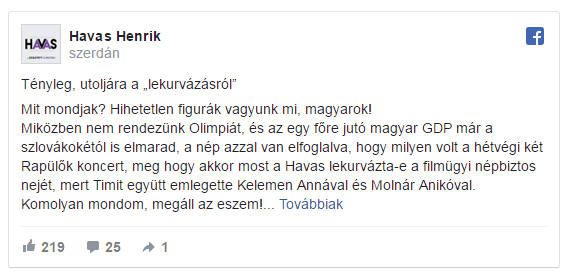 Havas Henrik Facebook-oldalán osztotta meg gondolatait követőivel.