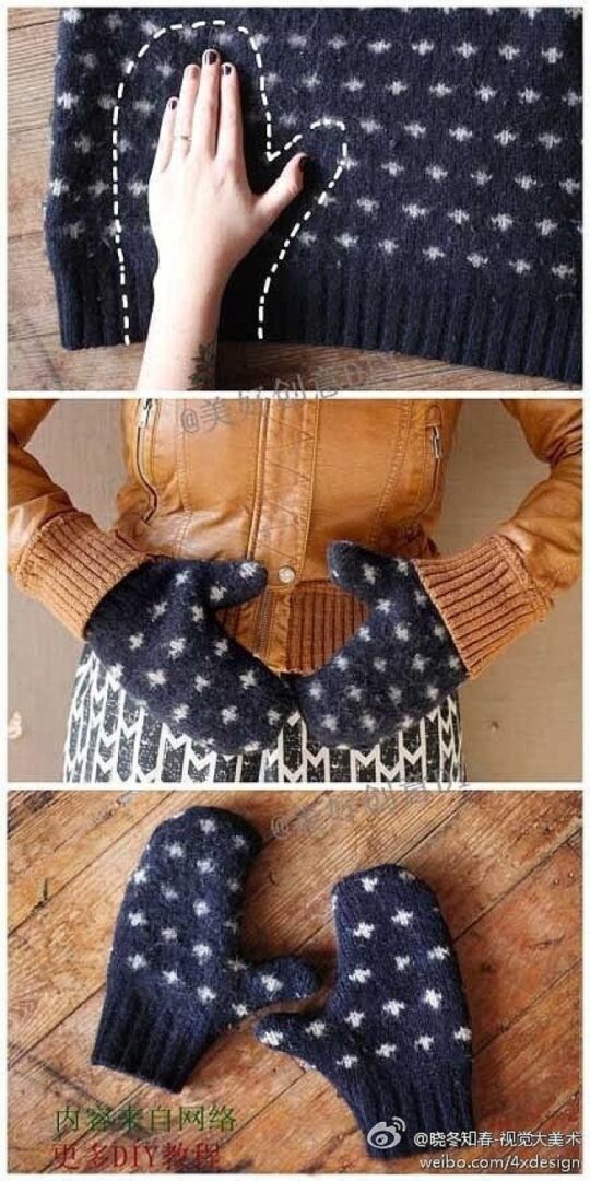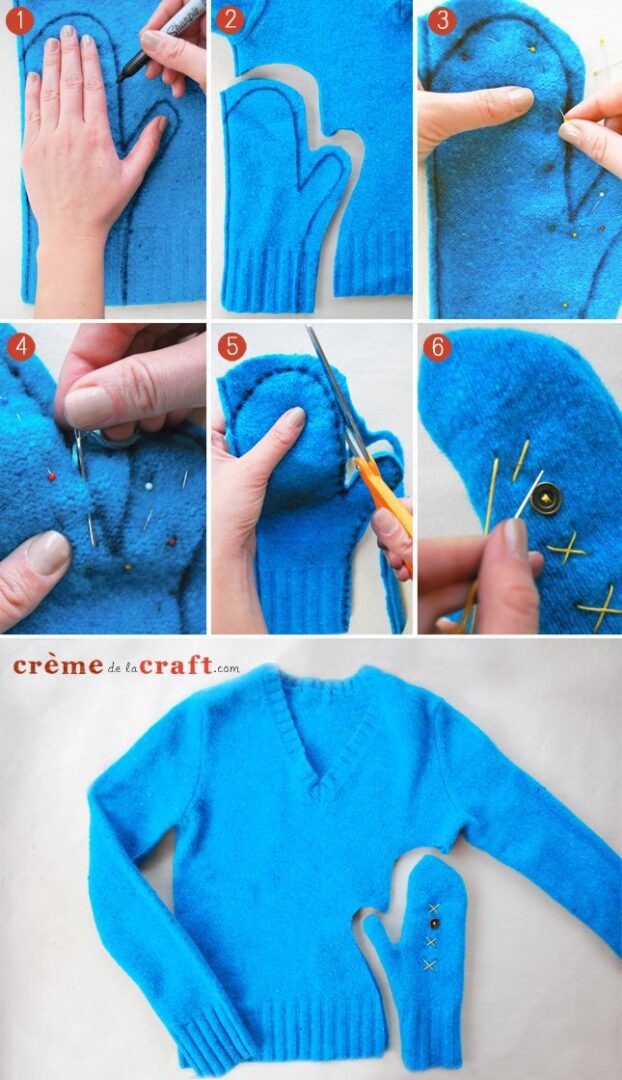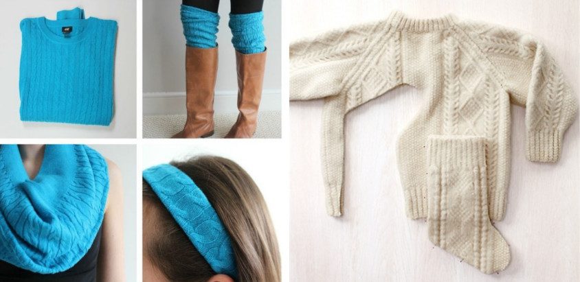 Tudtad, hogy egy pulóver alsó részéből egy pár kesztyűt készíthetsz, vagy az ujjából egy meleg házi papucsot? Két darab léc és egy masni felhasználásával, egy különleges táska lehet a pulóverből.