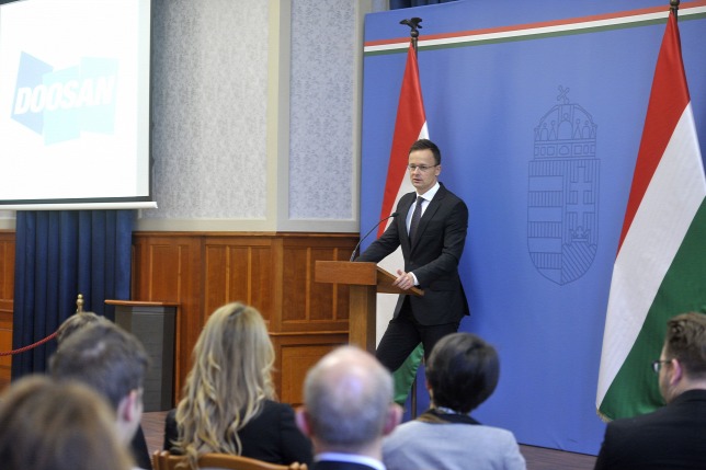Európában egyedülálló gyárat épít egy autóipari multi Magyarországon – jelentette be Szijjártó Péter külgazdasági és külügyminiszter. Közölte, a dél-koreai Doosan 4,7 milliárd forintos vissza nem térítendő kormányzati támogatással 32 milliárd forintos autóipari beruházást telepít Tatabányára. A Doosan új üzeme Európában egyedüliként fog rézfóliát gyártani elektromos autók akkumulátoraihoz. Az építkezés még idén elkezdődik, és várhatóan 2019 második felében ér véget, a gyár 181 munkavállalót foglalkozat majd.