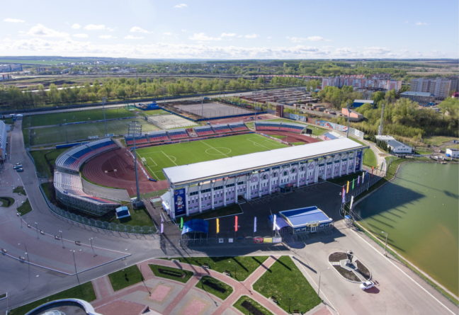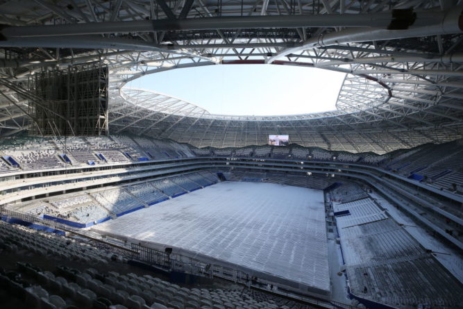 Az oroszok a vb nyitányára 13 új stadion építését ígérték, végül a vb meccseknek 11 város 12 stadionja ad helyszínt. A legnagyobb a 81 ezer férőhelyes Luzsnyiki lesz, a legkisebb pedig a 35 ezres jekatyerinburgi aréna.