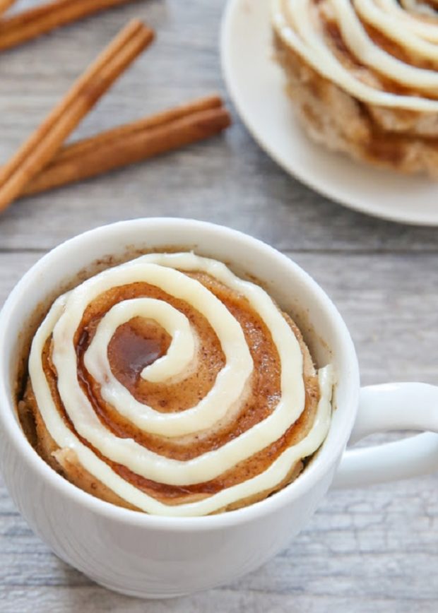 4. Tedd a mikróba 1 percre a bögrét. A fahéjas rész ragacsos marad, az akkor lesz megfelelő állagú, majd amikor kicsit kihűlt a tészta.
