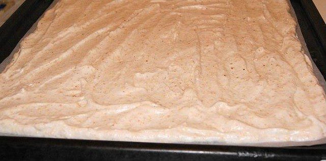 Kavarjuk ki a porcukrot a darált dióval, verjük fel a tojásfehérjét 60 g cukorral dolgozzunk robotgéppel, közepes erősségen verjünk kemény habot, majd lassanként adjuk hozzá a felvert habhoz a porcukorral kikavart darált diót, egy spatulával óvatosan kavarjuk össze. Sütőpapírral bélelt nagy tepsibe öntjük a tésztát tésztát. Előmelegített sütőben 175 fokon süssük 25-30 percet.