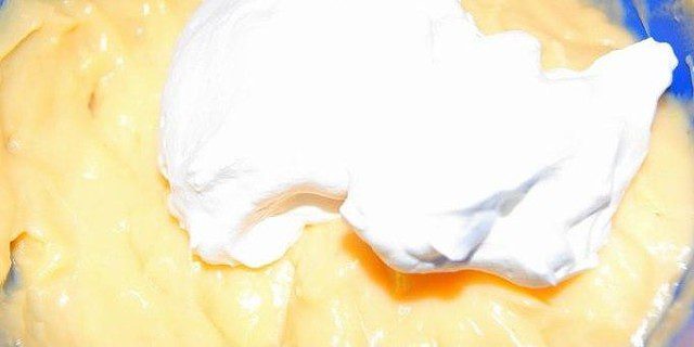 A krém elkészítése: kavarjuk ki a tojás sárgáját a 160 g cukorral, a keményítővel, a tejjel és a reszelt citrom héjával és tegyük oda lassú tűzre főni. Folytonos kavargatás közben főzzünk sűrű krémet, majd vegyük le a tűzhelyről és adjuk hozzá a krémhez a citromlét. Hagyjuk teljesen kihűlni. Verjünk kemény habot a 250 ml tejszínből majd kavarjuk össze a kihűtött főtt krémmel.