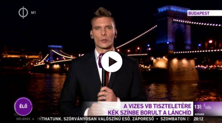 Kék színben pompázik a Lánchíd ma éjfélig, ezzel jelezve, hogy hamarosan, pontosan három hónap múlva kezdetét veszi a 2017-es Budapesti Vízi Világbajnokság. A kék szín a FINA, azaz a vizes sportágakat tömörítő nemzetközi szövetség színe.