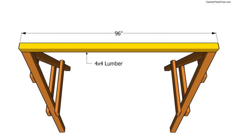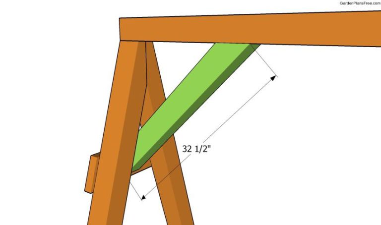 Először is készítsük el a két darab tartó állványt, A betű formában. Mind a két állványnak két rögzítő eleme van vízszintesen, az egyik az alacsonyabb részen, a másik a magasabb részen. A négy lábnak kiválasztott gerendák 2,4 m hosszúságúak. A felső részeken két szöget alkotnak az egyik szög 25 fokos, a másik pedig 15 fokos ahogyan a mellékelt ábrán is látható.