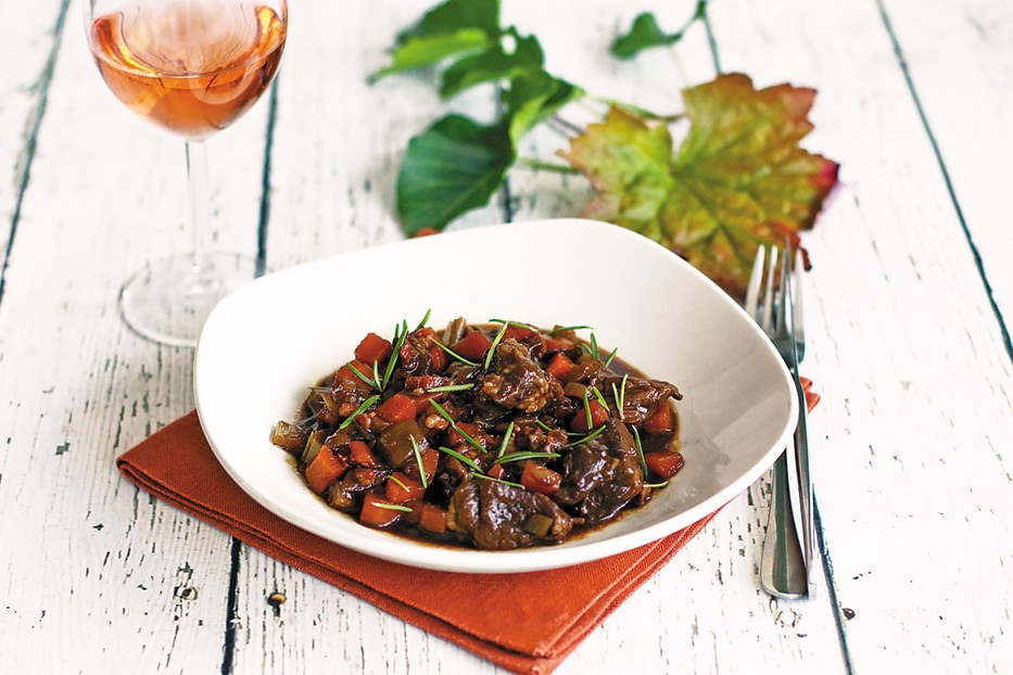 1. A húst megmossuk, leszárítjuk és nagyobb kockákra vágjuk. A hagymát, a fokhagymát meghámozzuk, finomra vágjuk. A répákat és a zellert meghámozzuk, megmossuk, nagyobb darabokra vágjuk. A gombát megtisztítjuk, elfelezzük.