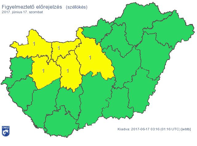 A megerősödő északi, északnyugati szelet az Észak-Dunántúlon és a középső országrészben 60-70 km/h közötti széllökések kísérhetik napközben.