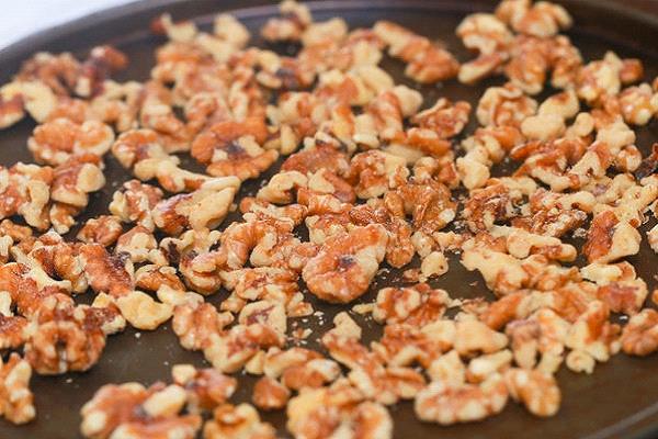 5. Az apróra vágott dióbelet megpirítjuk egy serpenyőben, majd a krémhez adjuk.
