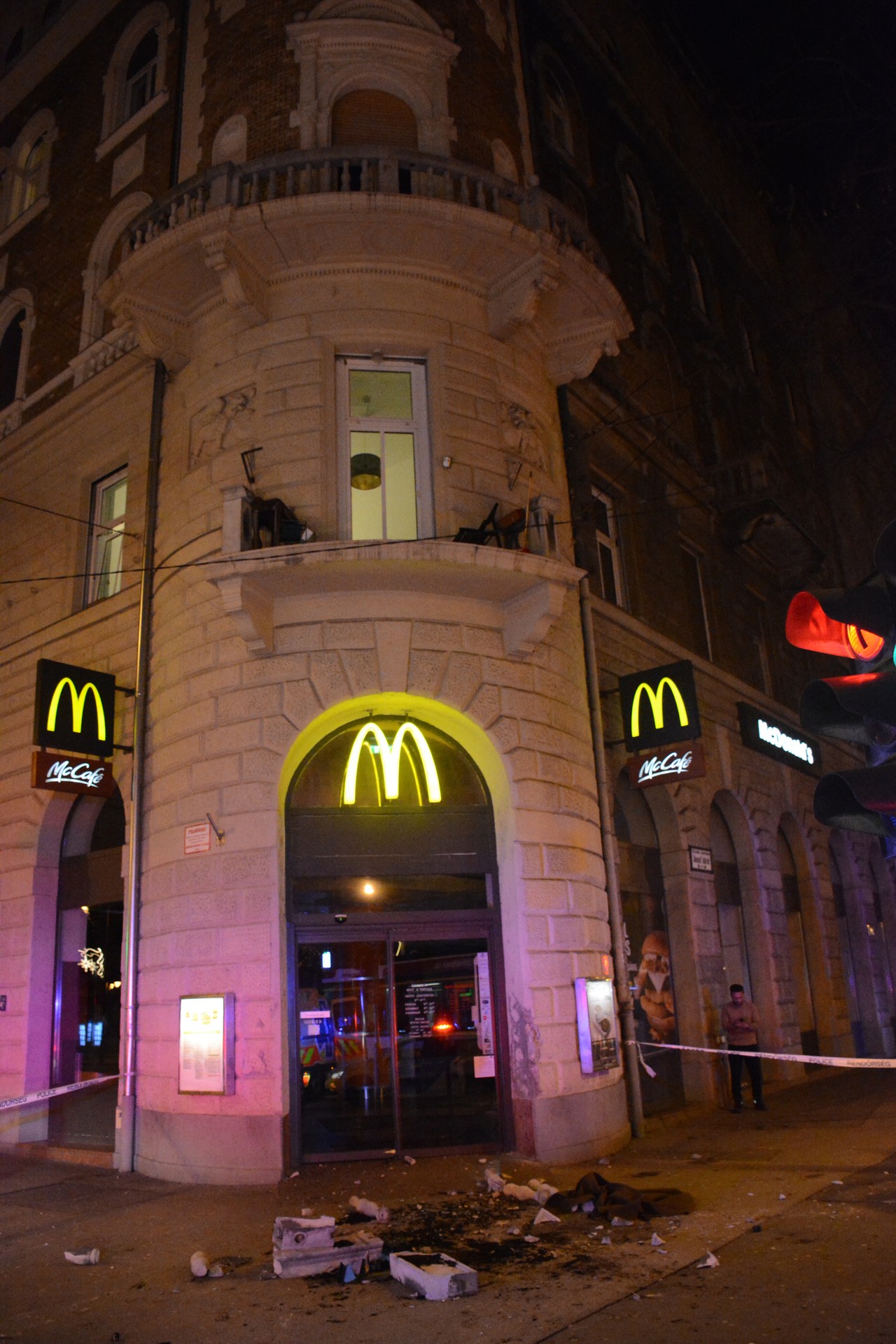 Információk szerint a balesetben két külföldi állampolgár sérült meg súlyosabban, miután a nyolcadik kerületi Harminckettesek terén lévő bérház erkélyéről az utcára zuhantak. A lakás alatt egy McDonald’s működik, de a baleset idején senki sem volt az erkély alatt.