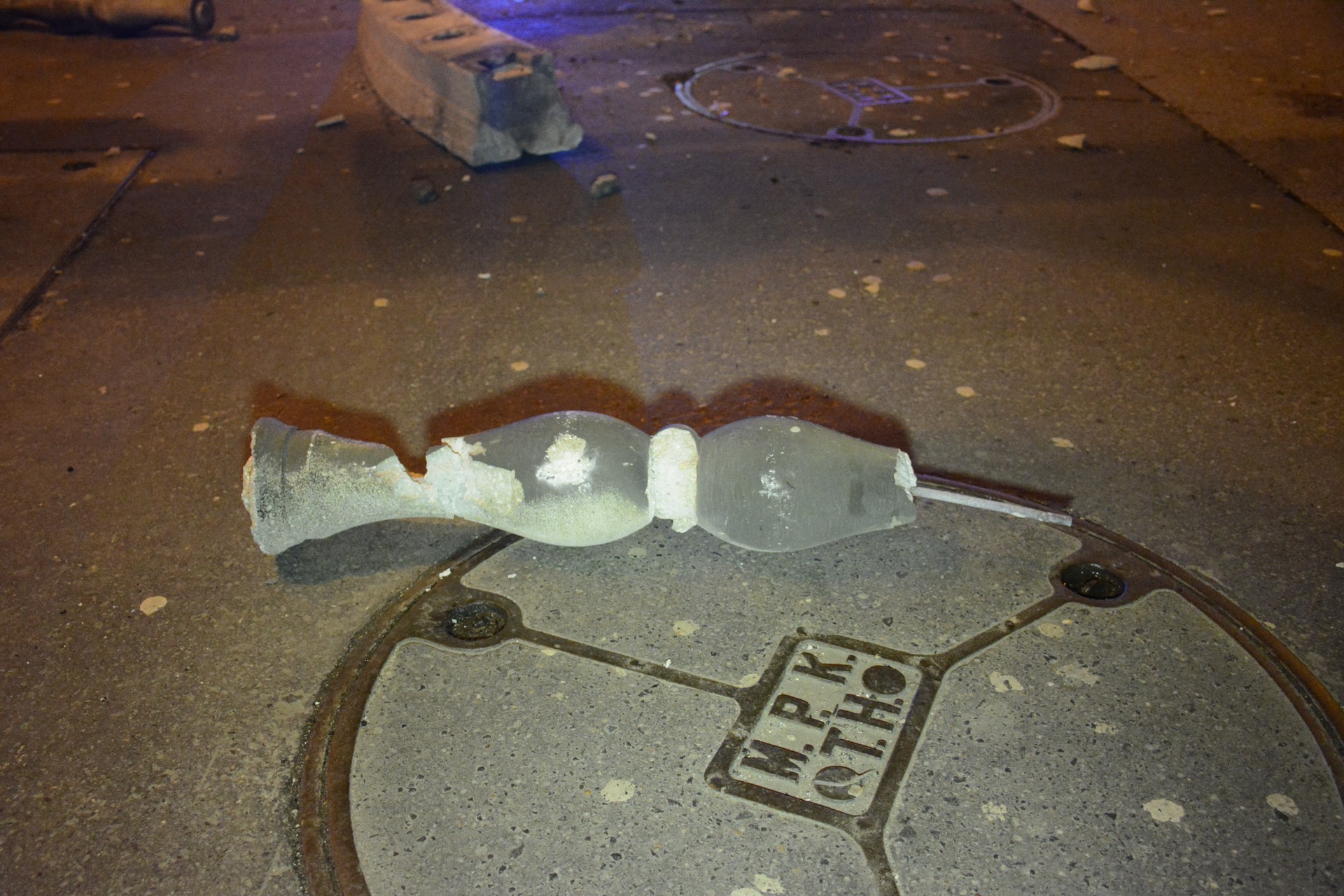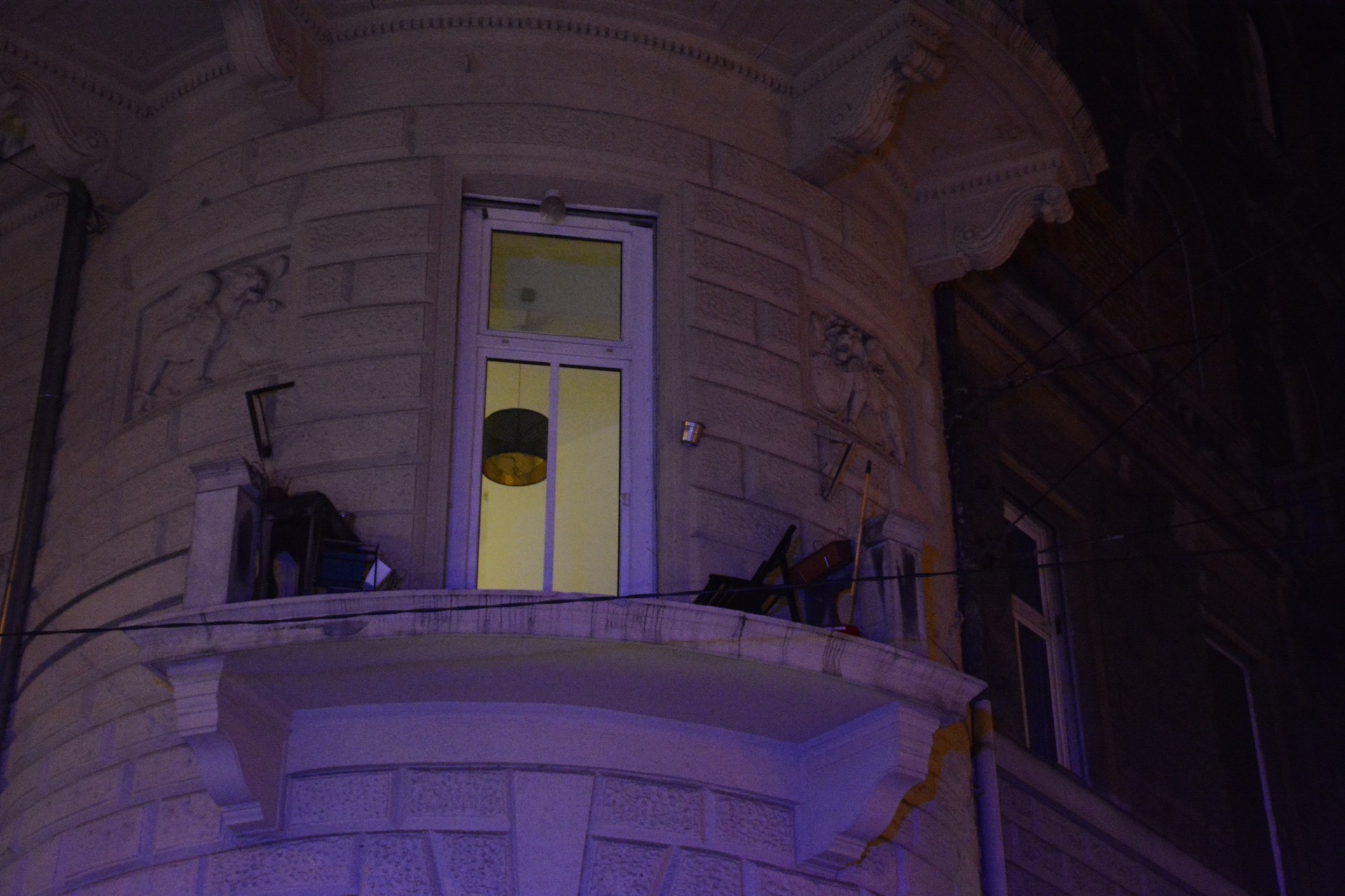 Kiszakadt egy első emeleti lakás erkélyének korlátja a Harminckettesek terén december 26-án hajnalban