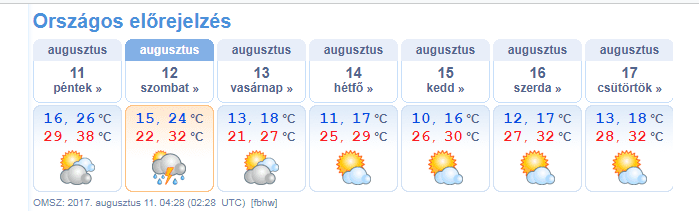 Az éjszaka első felében a Dunántúlon, később már a középső országrész fölött is lehetnek erősen felhős területek, szórványosan zápor, zivatar várható. Ugyanakkor hazánk keleti harmadában hajnalig még nagyrészt derült, csapadékmentes idő valószínű. Egyre nagyobb területen északnyugatira fordul és időnként megerősödik a szél, sőt zivatarban viharos széllökésekre is számítani kell. Kora reggelre általában 15 és 22 fok közé csökken a hőmérséklet, de elsősorban a Tiszántúlon néhol enyhébb is lehet a hajnal.