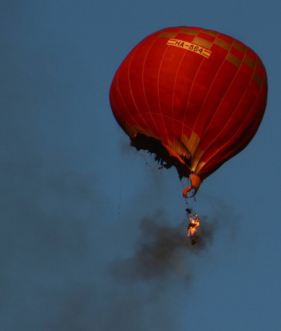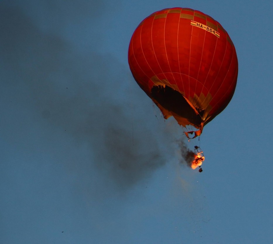 Vál — Percek alatt vált a születésnapi ünnep halálos drámává, amikor kigyulladt egy hőlégballon szombat kora este Vál térségében.