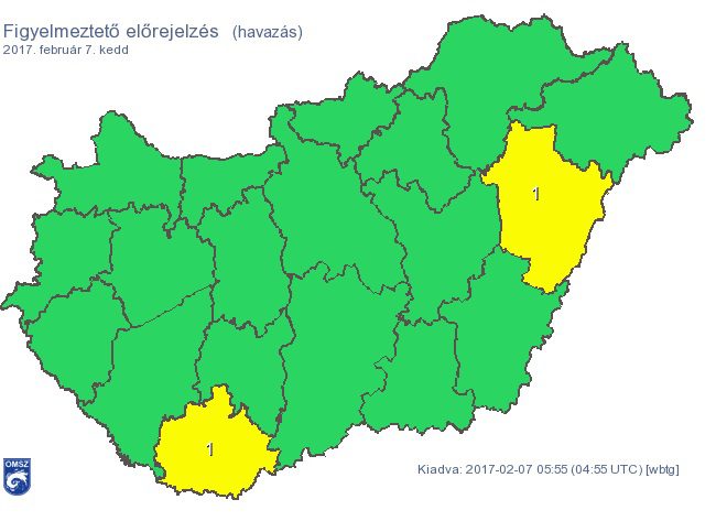 Az északi szél többfelé megerősödik. A legmagasabb nappali hőmérséklet kedden többnyire 0 és +3 fok között valószínű. Késő este +1, -4 fok valószínű. Az Országos Meteorológiai szolgálat két megyére figyelmeztetést adott ki havazás miatt.