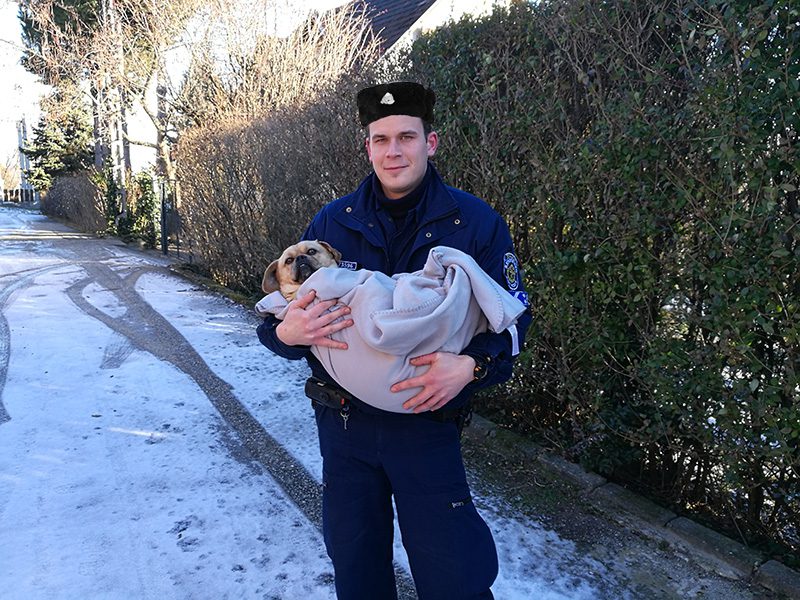 Az állat nem tudott onnan kiugrani, ezért a rendőrök a létrán lemásztak, kihozták, majd pokrócba csavarták. Ezt követően szolgálati autóval elvitték az állatorvosi rendelőbe, ahol a chip alapján azonosították és értesítették a kutya gazdáját.