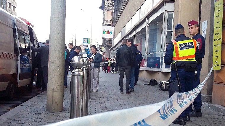 A Rákóczi út egyik házába azzal hívták ki a járőröket, hogy a folyosón egy férfi őrjöng, cserepeket dobál, ablakokat tör be – írták. Mivel a rendőrökkel szemben is – egyik kezében vascsővel, a másikban fűrésszel – fenyegetően lépett fel, vegyi eszközt és testi kényszert alkalmaztak ellene, majd megbilincselték.
