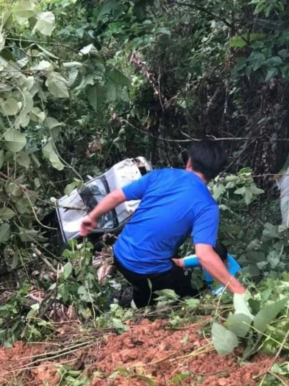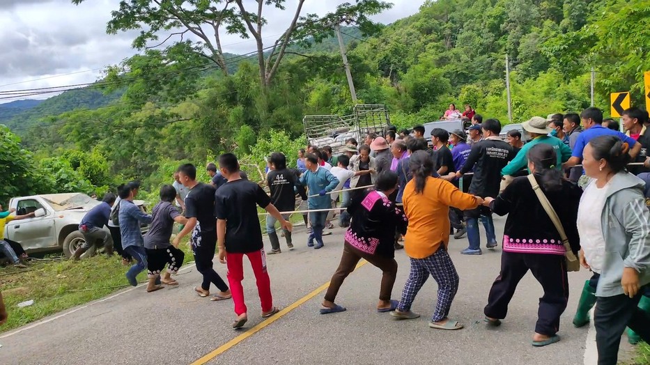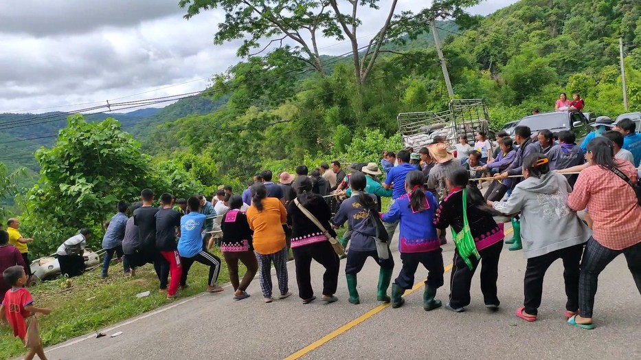 Több száz falubéli sietett annak a férfinak a segítségére, aki autójával 80 métert lezúgott egy hegyről a thaiföldi Tak településen, ahol épp vihar volt.